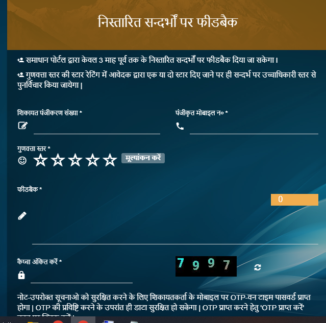 - समस्या के समाधान के बाद, आपको फीडबैक प्राप्त होगा, जिसे आप पोर्टल पर लॉगिन करके देख सकते हैं।