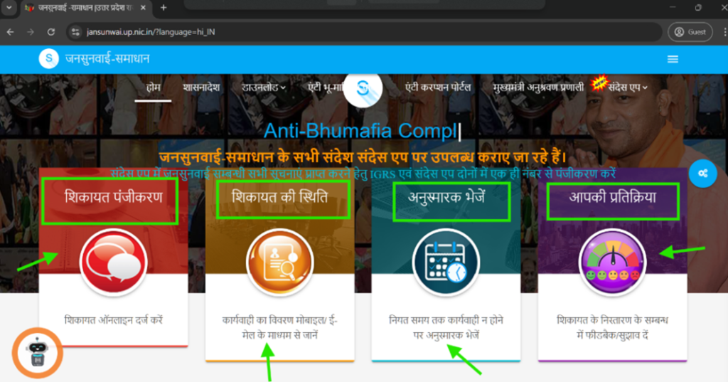 सबसे पहले, आपको जनसुनवाई समाधान की आधिकारिक वेबसाइट पर जाना होगा। वहां पहुंचने के बाद, होमपेज पर आपको विभिन्न सेवाओं के विकल्प दिखाई देंगे। इस लिंक https://jansunwai.up.nic.in का उपयोग करके आप सीधे पोर्टल पर पहुंच सकते हैं। यह पोर्टल उत्तर प्रदेश सरकार द्वारा संचालित है और शिकायतों के समाधान के लिए डिज़ाइन किया गया है।