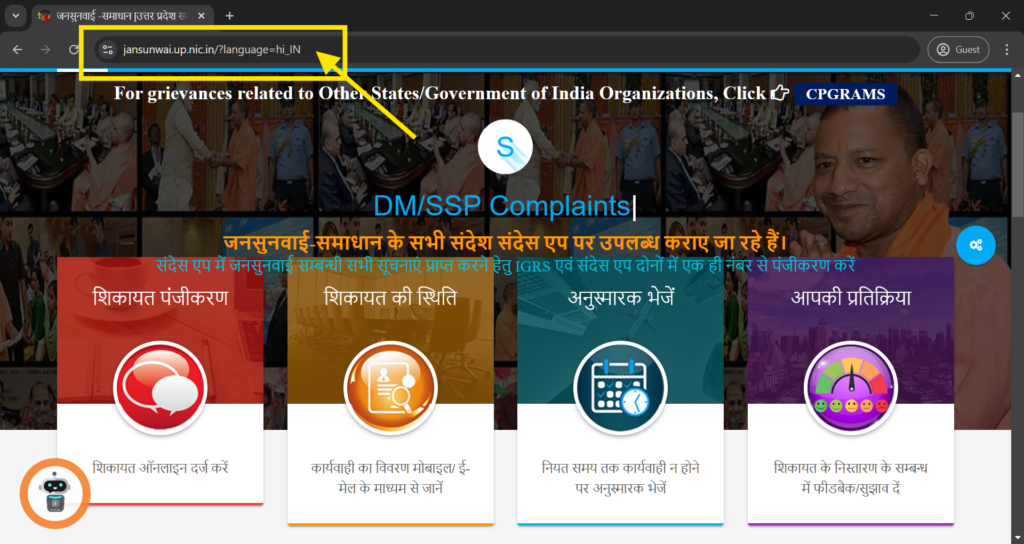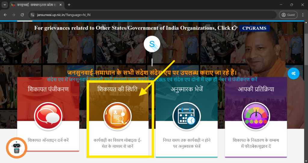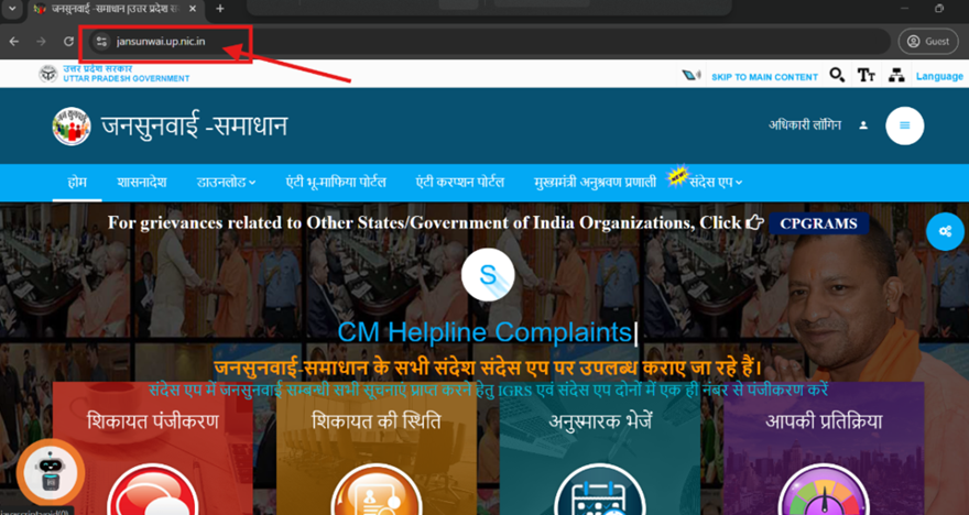 वेबसाइट पर जाएँ: पहले लाल बॉक्स में लिखे लिंक (https://jansunwai.up.nic.in/) पर जाएं।
