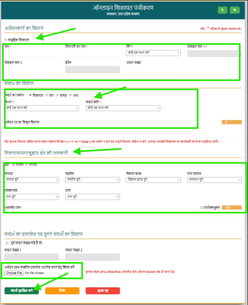 इसके बाद आपके सामने जनसुनवाई पंजीकरण का आवेदन फॉर्म खुल जायेगा। फॉर्म में सही जानकारी देकर आप ऑनलाइन शिकायत दर्ज कर सकते हैं।