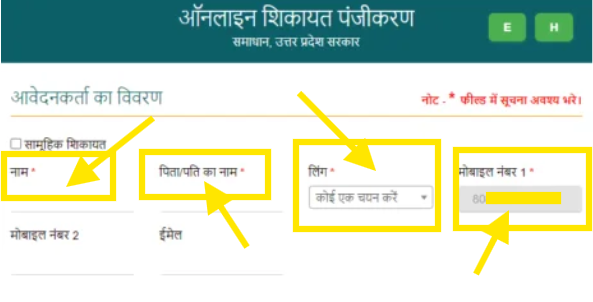 सभी आवश्यक व्यक्तिगत विवरण जैसे नाम, पिता का नाम, लिंग, मोबाइल नंबर, वैकल्पिक मोबाइल नंबर (यदि हो), और ईमेल पता दर्ज करें। यह जानकारी सही और सटीक रूप में भरें ताकि आपकी शिकायत पर कार्रवाई के लिए उचित जानकारी उपलब्ध हो।